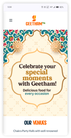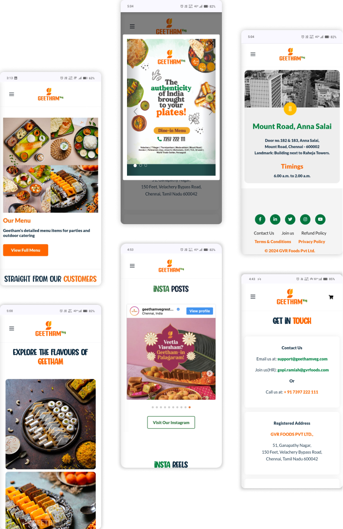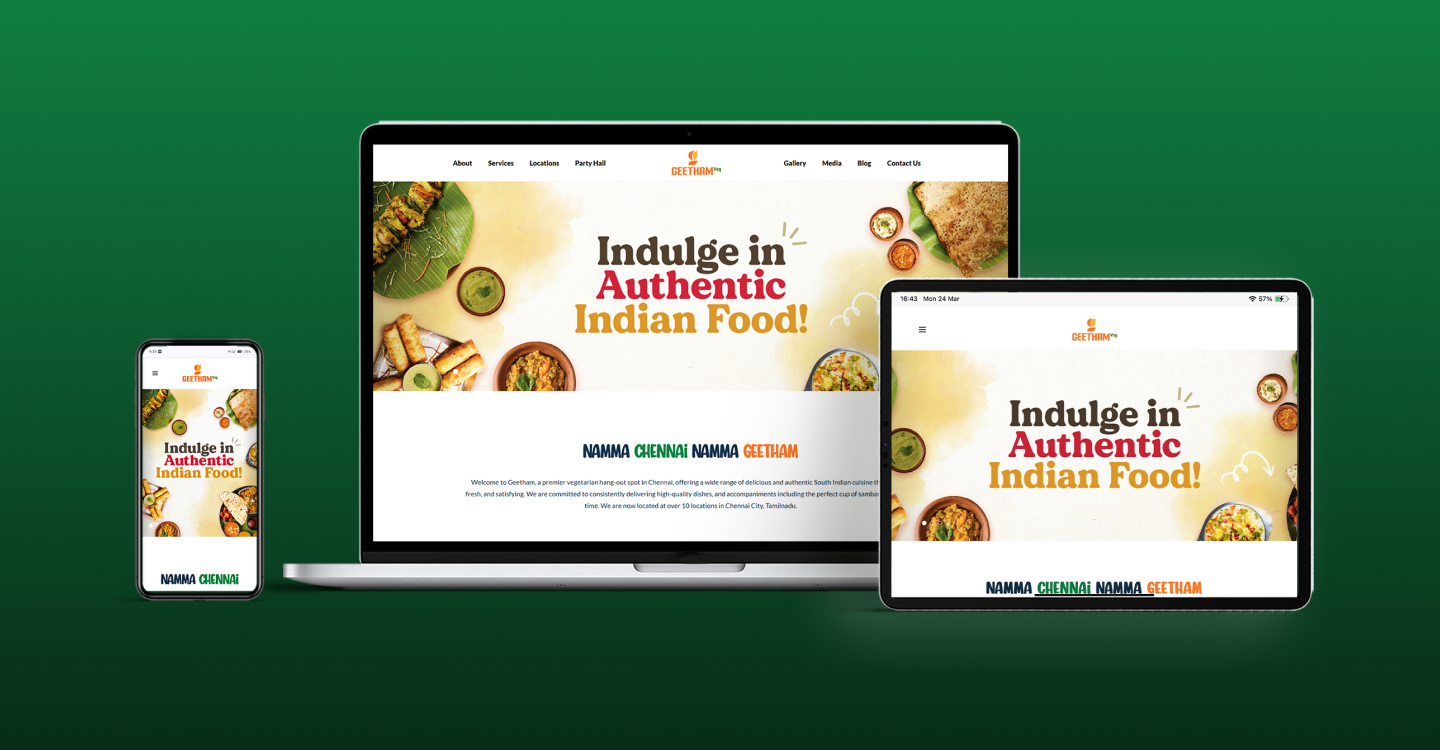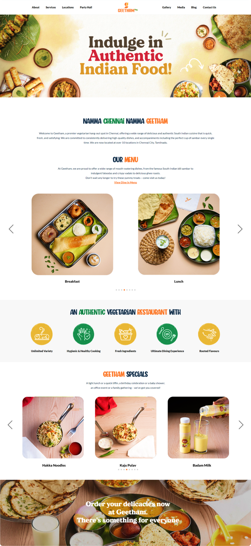 We developed a website for Geetham Veg Restaurants, making it easier for customers to explore their vibrant South Indian vegetarian menu and dining experience online.